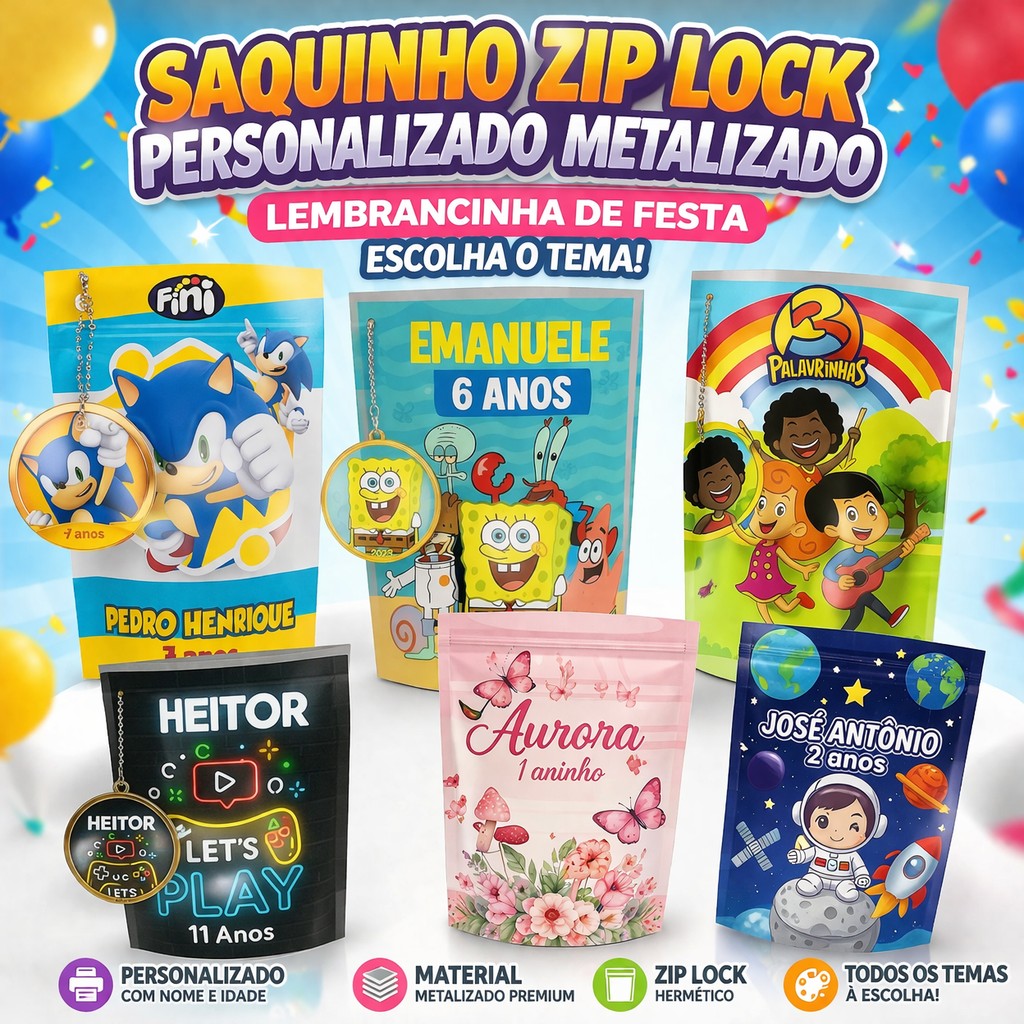 ???? Saquinho Zip Lock Metalizado Personalizado para Lembrancinhas ????